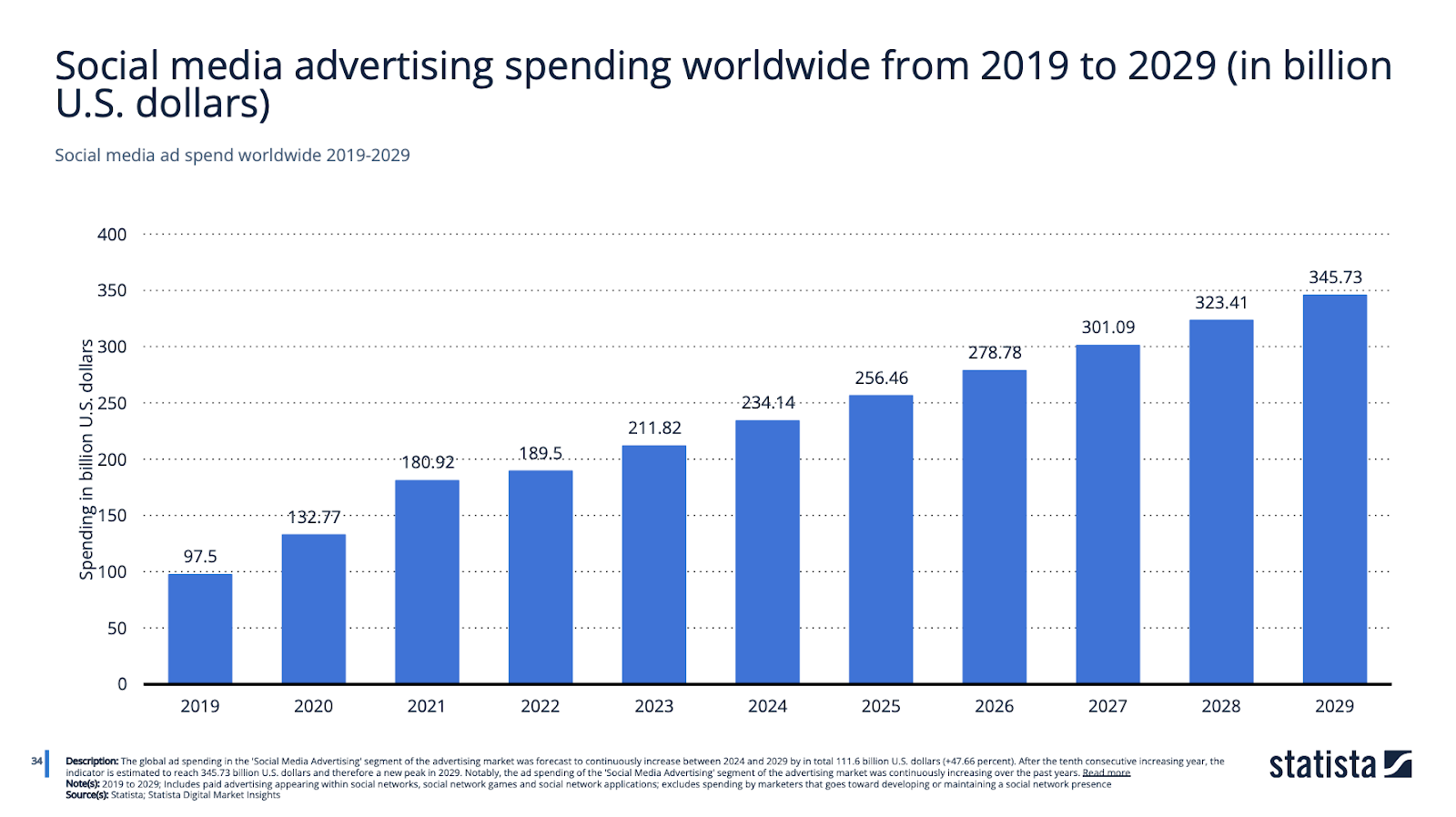 Social media advertising spend in this same year exceeded US$230 billion, accounting for nearly 30% of all digital advertising spend.