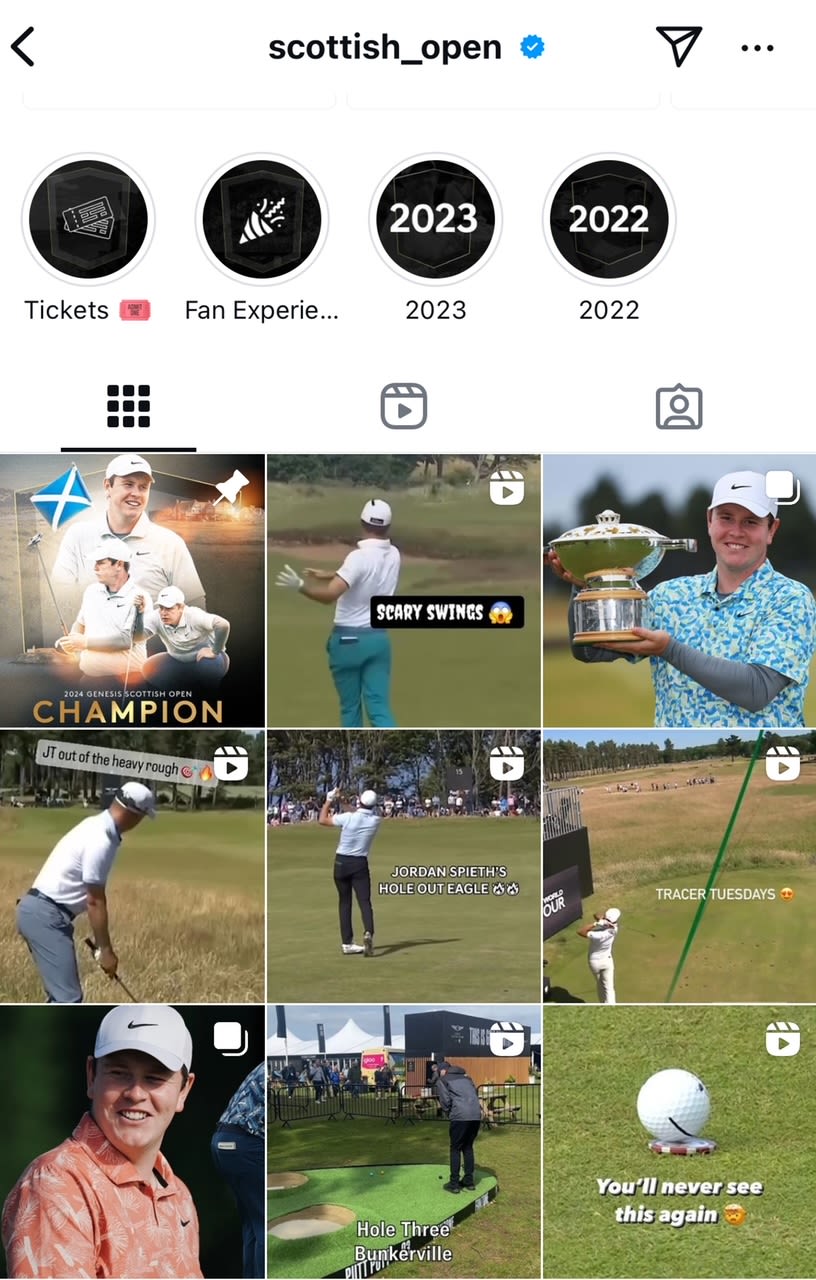 “We flipped our social strategy around,” she continues. “On Instagram we have specific tournament accounts, such as for the Irish Open and the Scottish Open, and we were constantly trying to push ticket sales on these. But actually, people aren’t necessarily on Instagram to buy tickets.
